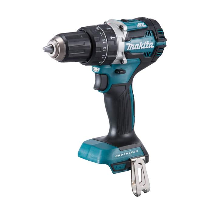 Makita's 18v cordless drill provides variable speed control by trigger and features a battery protection circuit.